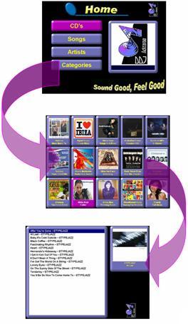 Services offered: Our software makes it easy to pick a song.You can select from the CD cover,Song title, Artist name or category section 60,70,80's, Dance,Rock & Roll,
