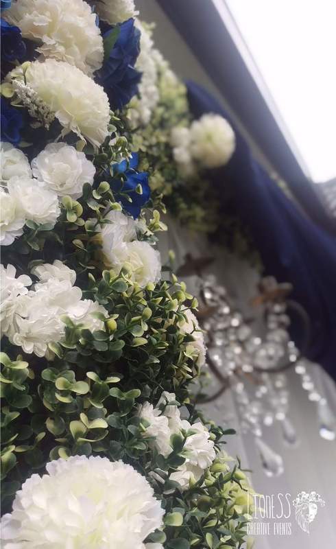 Colour scheme is navy, gold and cream. Other colors can be arranged.