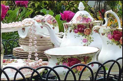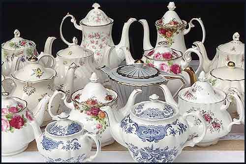 Beautiful English Vintage Teapots. High Tea Hire is a ‘hirage company’ based in Napier which supplies loads of beautiful items throughout the North island for adding a vintage twist to your special event or party.